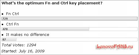 Владельцам ноутбуков Lenovo прекрасно известна одна особенность любого мобильного компьютера компании. На всех ThinkPad и IdeaPad крайняя левая кнопка является функциональной, ее нажатие вместе с другими клавишами отвечает за регулировку громкости, яркости экрана и другие функции. Кнопка Ctrl находится справа от Fn. В ноутбуках других производителей кнопка Ctrl чаще всего расположена слева, и этот нюанс может вызвать неудобство. В новых моделях ThinkPad назначение этих двух кнопок можно изменить так, как это удобно вам.Все началось с голосования в англоязычном блоге компании Lenovo. Аримаса Найто, вице-президент Lenovo по разработке ноутбуков ThinkPad, вынес «проблему Fn+Ctrl» на суд общественности летом прошлого года. Всего в голосовании приняло участие 1294 пользователя, результаты получились следующие: