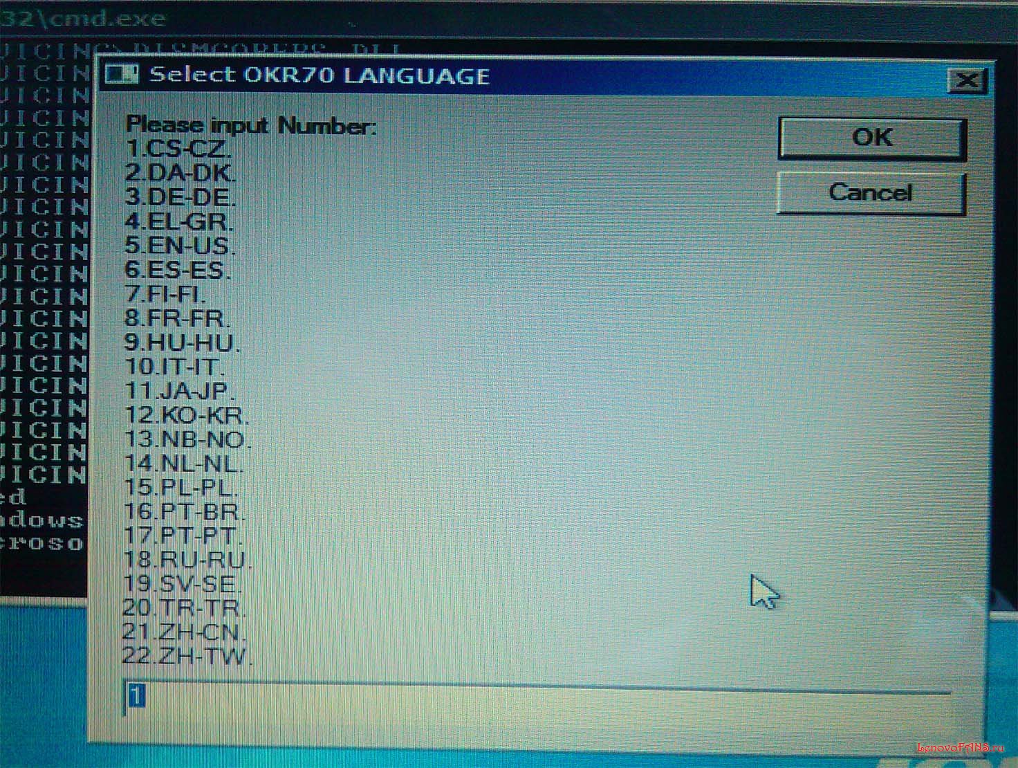 в окне программы жмем клавиши Ctrl + Left Shift + O, откроется окно командной строки. Теперь надо узнать под какой буквой находится OKR, если все делали по стандарту и не устанавливали программ создающих виртуальные приводы, то буква OKR должна быть G или F. Проверяем так: в открытой командной строке набираем DIR G: - должен появится список папок, в нем должна присутствовать папка ONEKEY. Если не получилось пробуем другую букву, и так до достижения результата. Получилось?! В командной строке набираем: