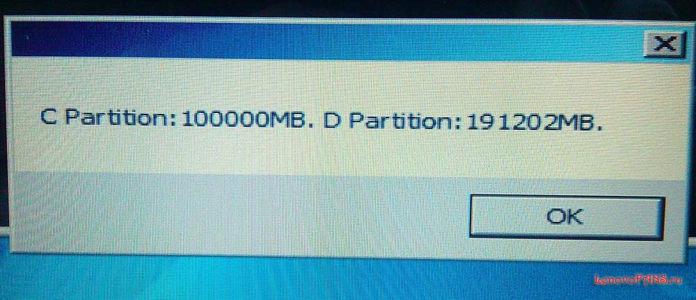 Следующее окошко, которое появится, несет чисто информационный смысл, тут показано каким будет размер дисков C и D.
