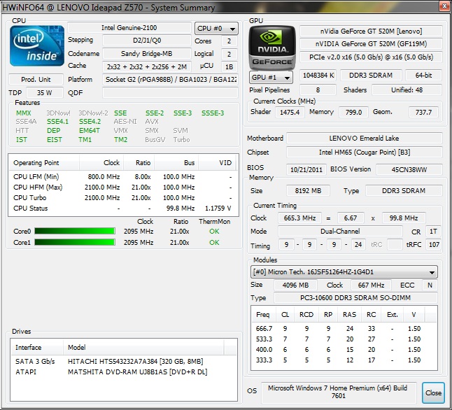 Ноутбук y560 видяха ati 5730 разогнал с помощью MSI Afterburner 2.0 по ядру с 650 до 775, по памяти с 800 до 951. 3DMark06 в номинале 7400 попугаев, в разгоне 8400. 3-10 фпс плюсом в зависимости от нагрузки. Сообщение отредактировал maden - 22 ноября 2010 11:37 |