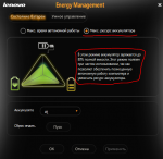 Все таки как выключить этот режим защиты батареи? Для разных ноутбуков Lenovo разные energy management. В моём G560 этот режим включился сам после установки energy management, система windows xp sp3. |