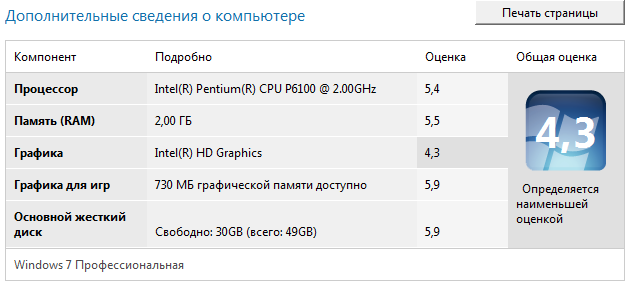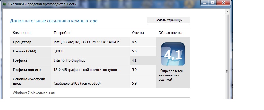 стандартное средство оценки производительности системы Windows 7 |
